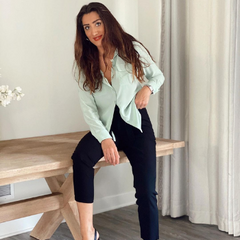 LEEZ Women Mulberry Silk Shirt Mint Green