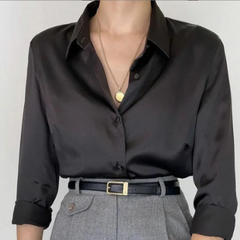 LEEZ Women Long Sleeve Mulberry Silk Blouse - Black