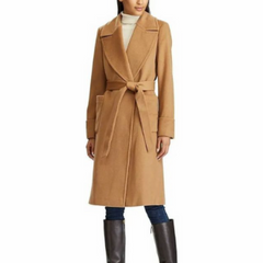 LEEZ Women Belted Wrap Wool Coat- Camel