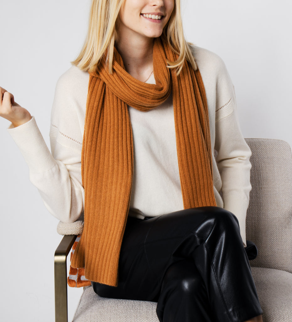 LEEZ Women Knitted Scarf in Cashmere - Orange