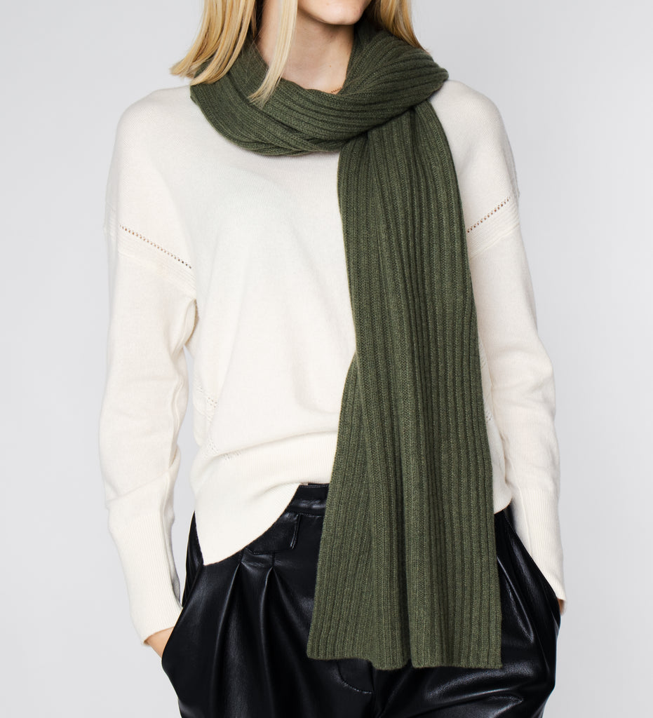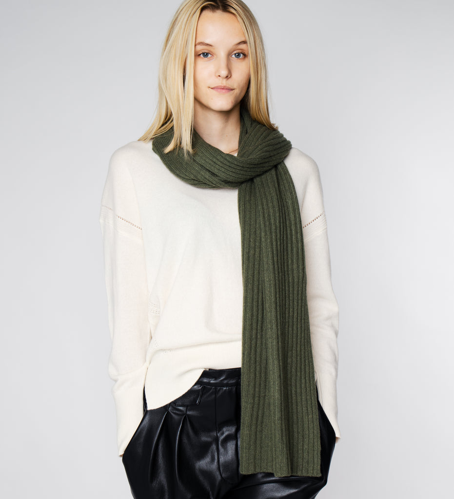LEEZ Women Knitted Scarf in Cashmere - Olive