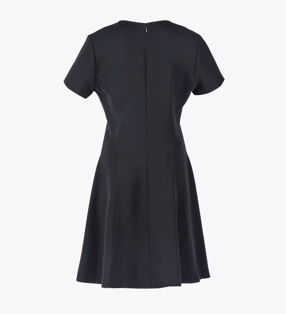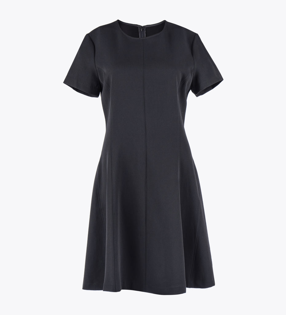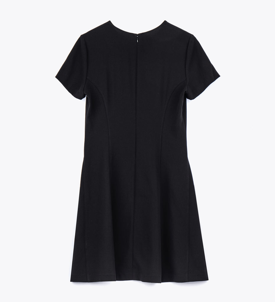 LEEZ Women Round Neck Short-Sleeve Flare Dress - Black