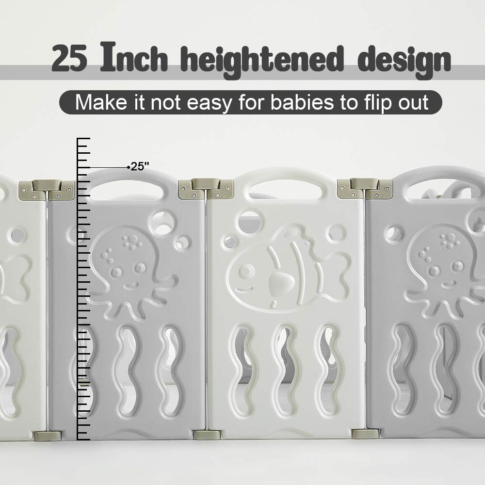 25 Inch Safety Height- Kids can learn how to crawl, walk, or develop overall motor skills in a safe and spacious activity space. 25 Inch height design makes it not able for babies to climb out.