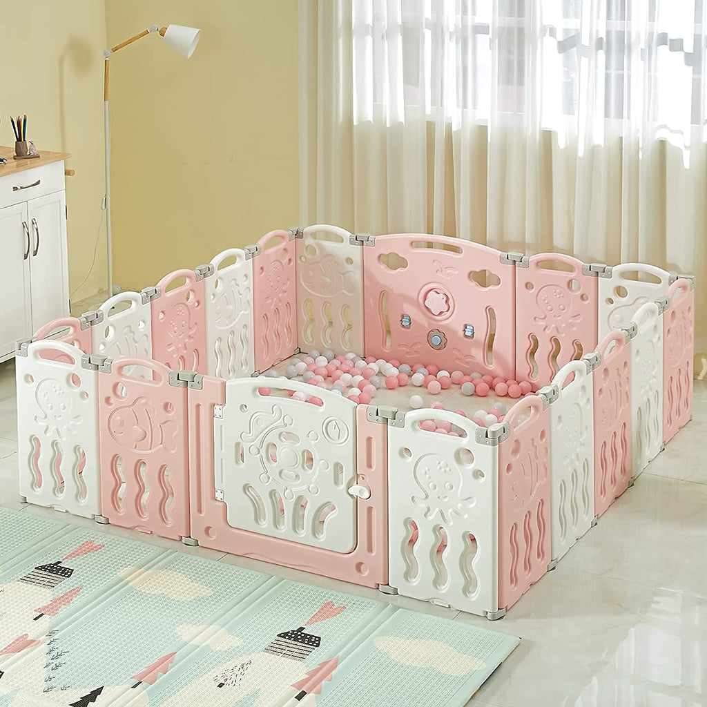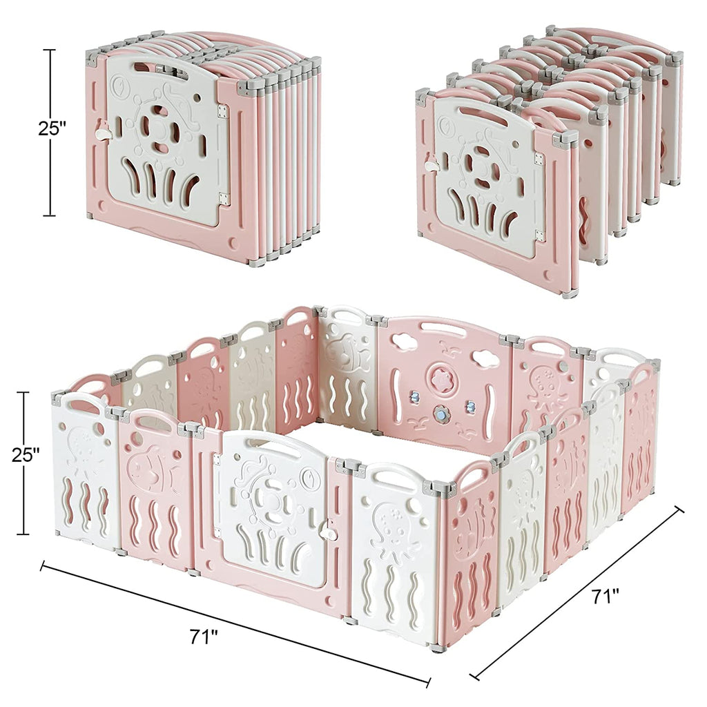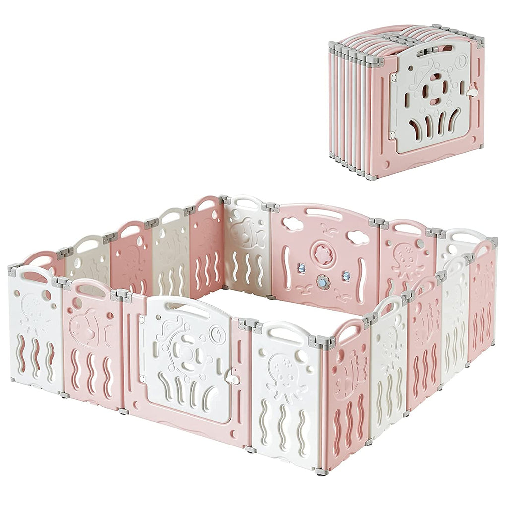 Baby Playpen Toddler Play Yard 18 Panels - Kids Safety Play Center Yard Game Panel and Gate with Safety Lock Adjustable Shape for Children Toddlers Indoors or Outdoors(Pink+White) Pink 18 Panels
