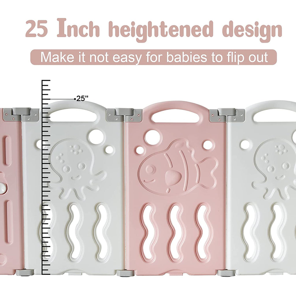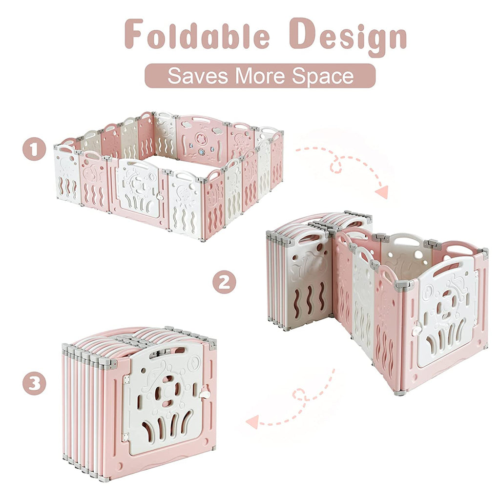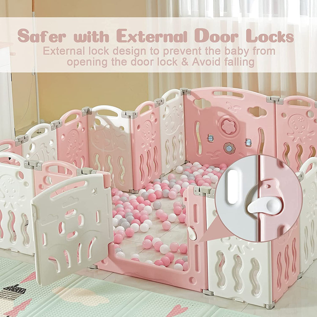 Baby Playpen Toddler Play Yard 18 Panels - Kids Safety Play Center Yard Game Panel and Gate with Safety Lock Adjustable Shape for Children Toddlers Indoors or Outdoors(Pink+White) Pink 18 Panels