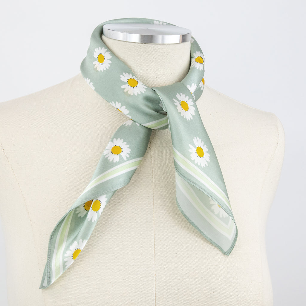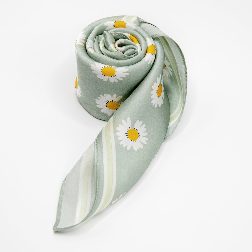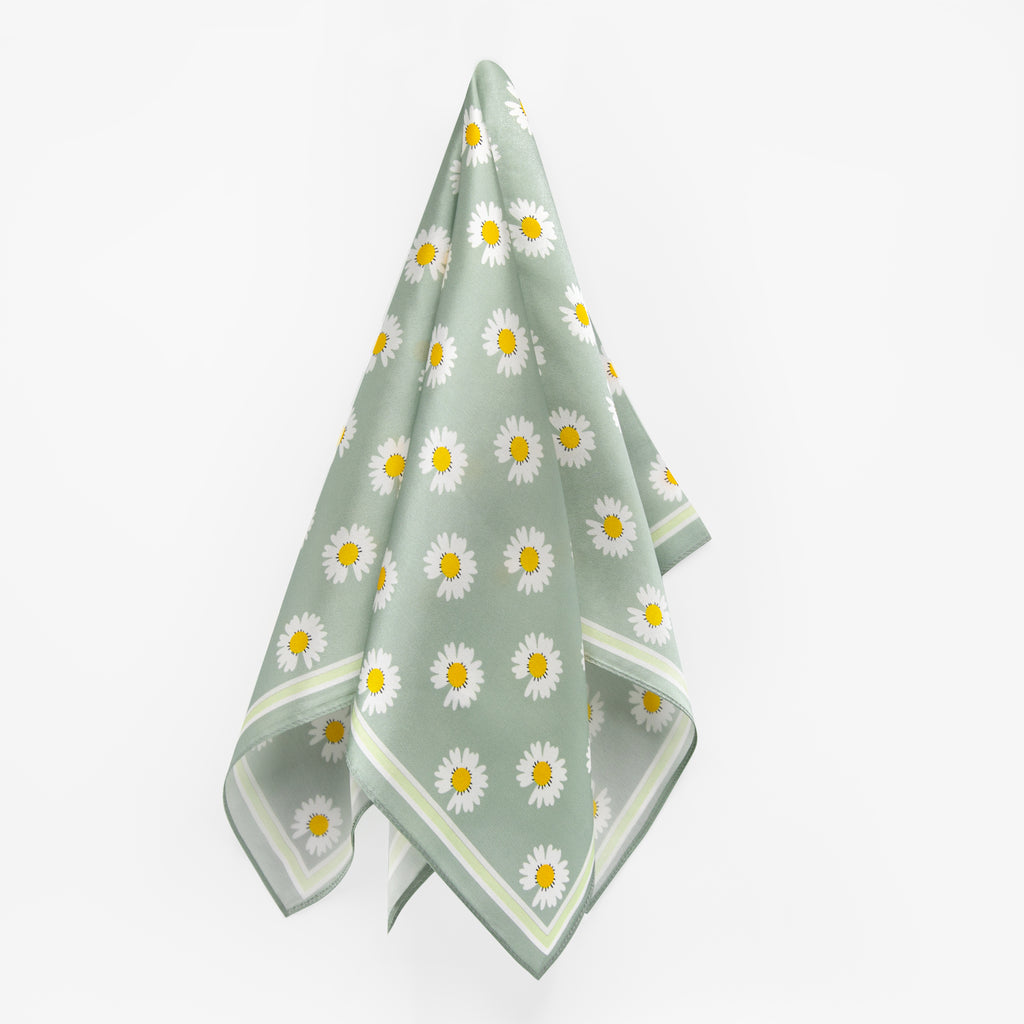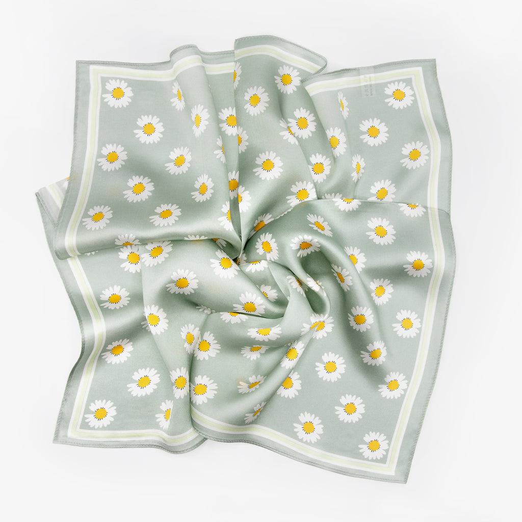LEEZ Daisy Verte Square Silk Scarf
