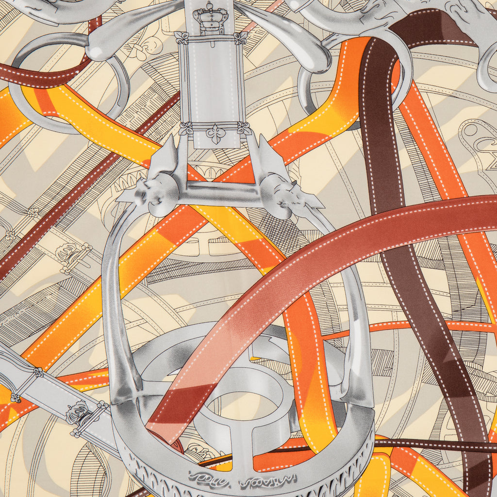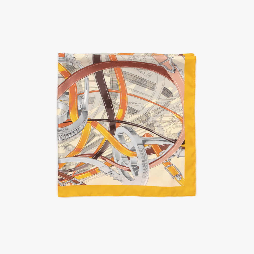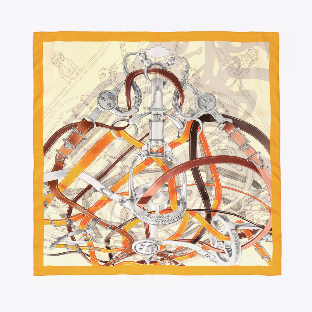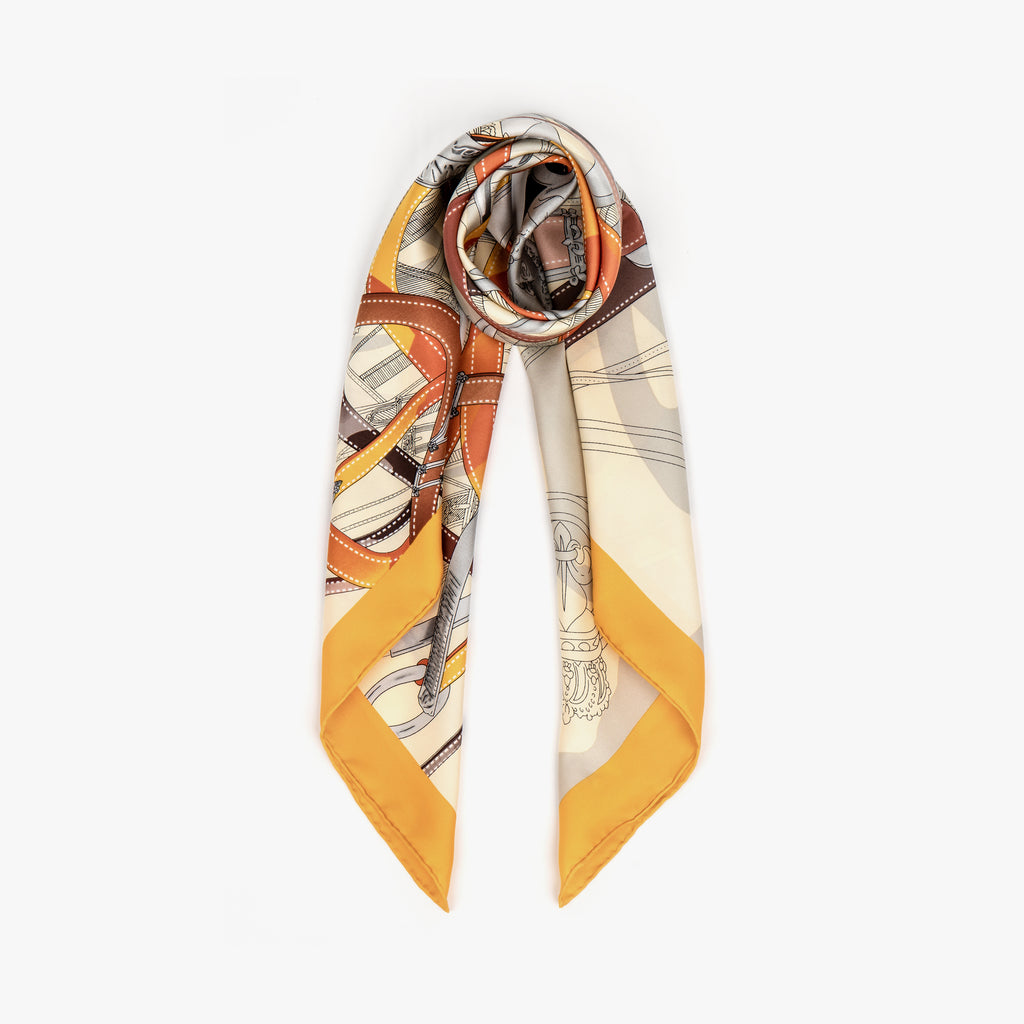 LEEZ La Ceinture Orange Print Square Silk Scarf