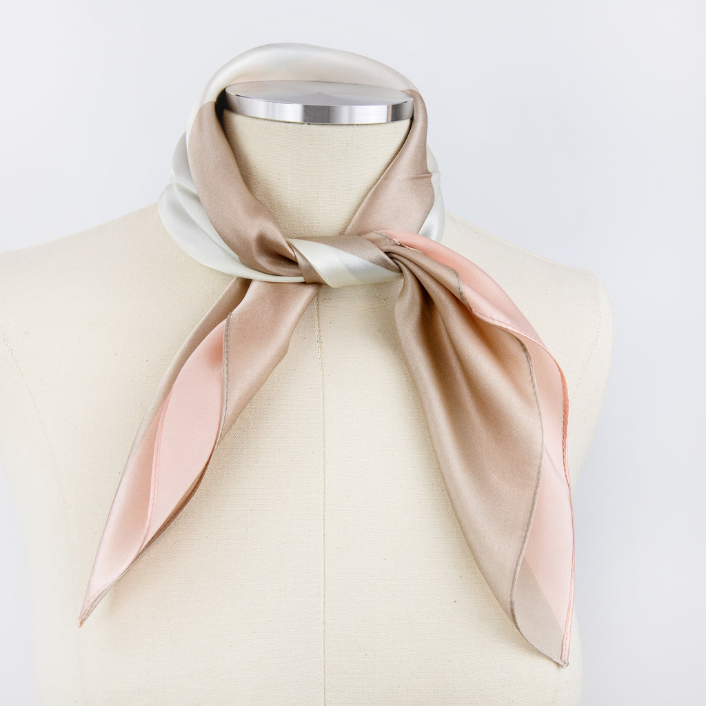 LEEZ Light Mocha & Cantaloupe Print Square Silk Scarf