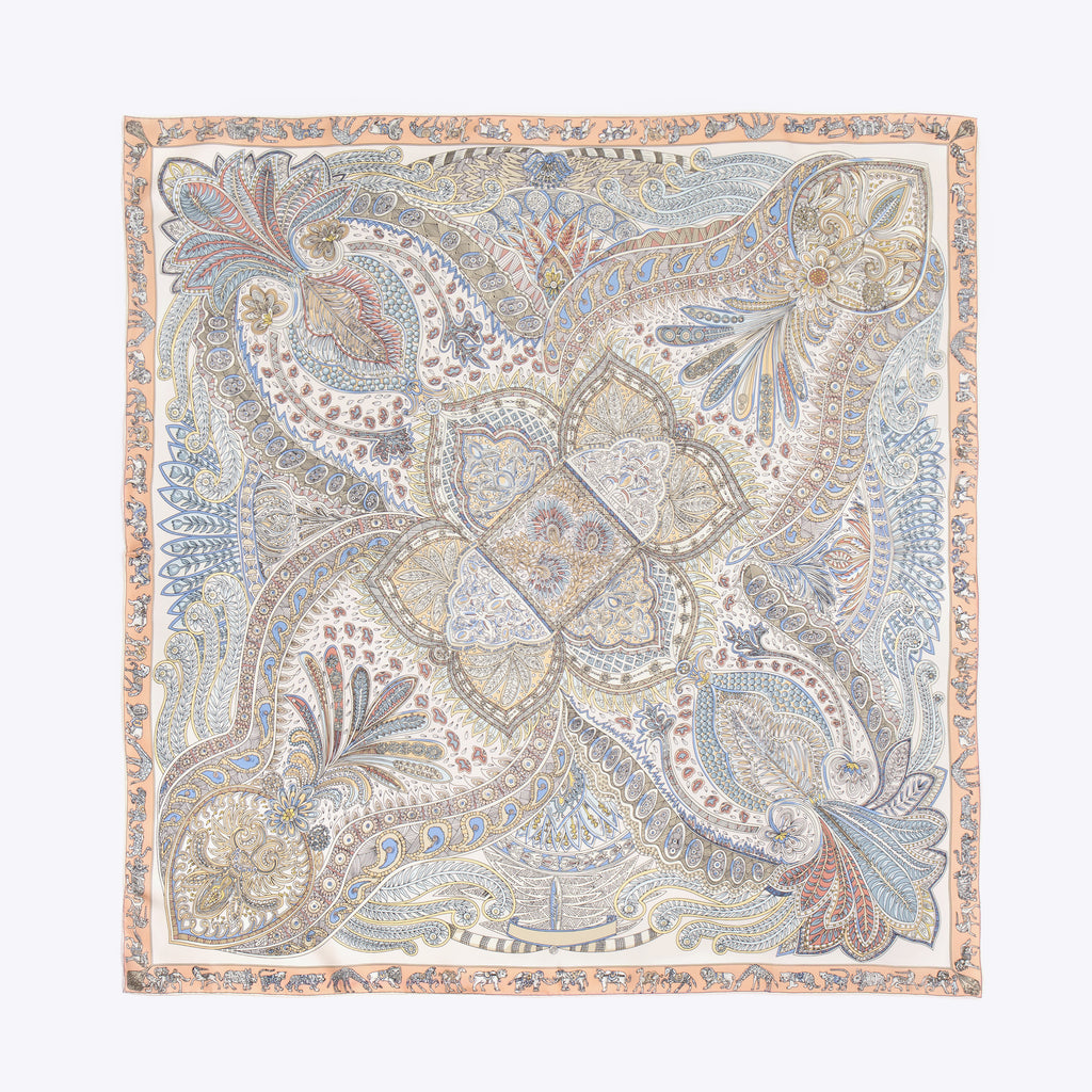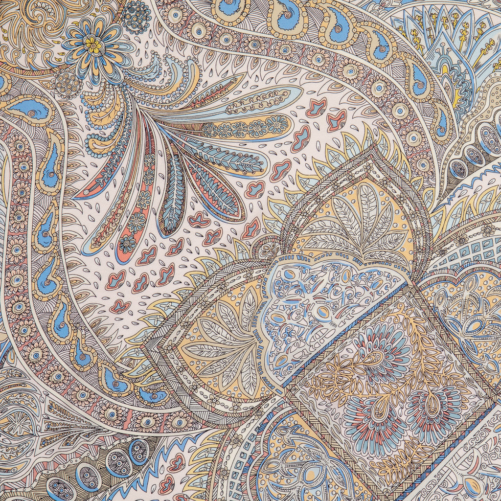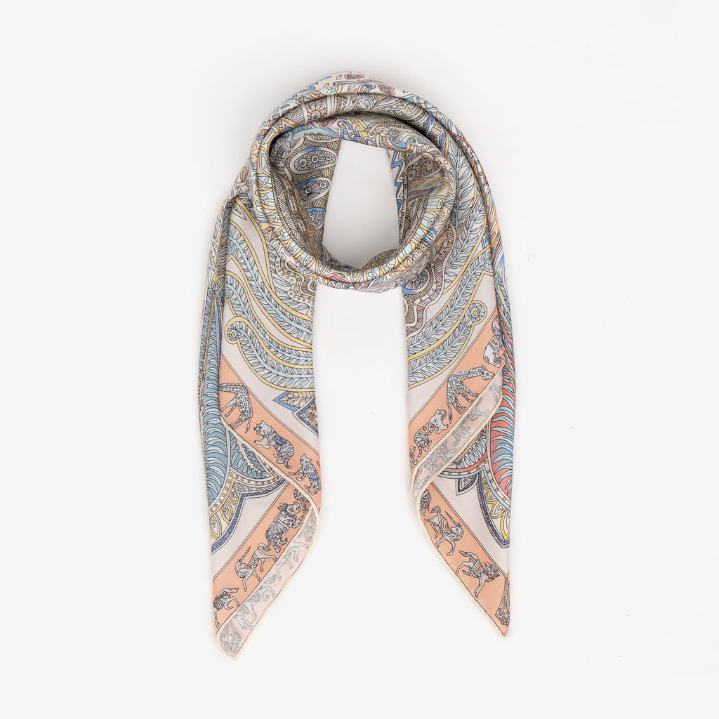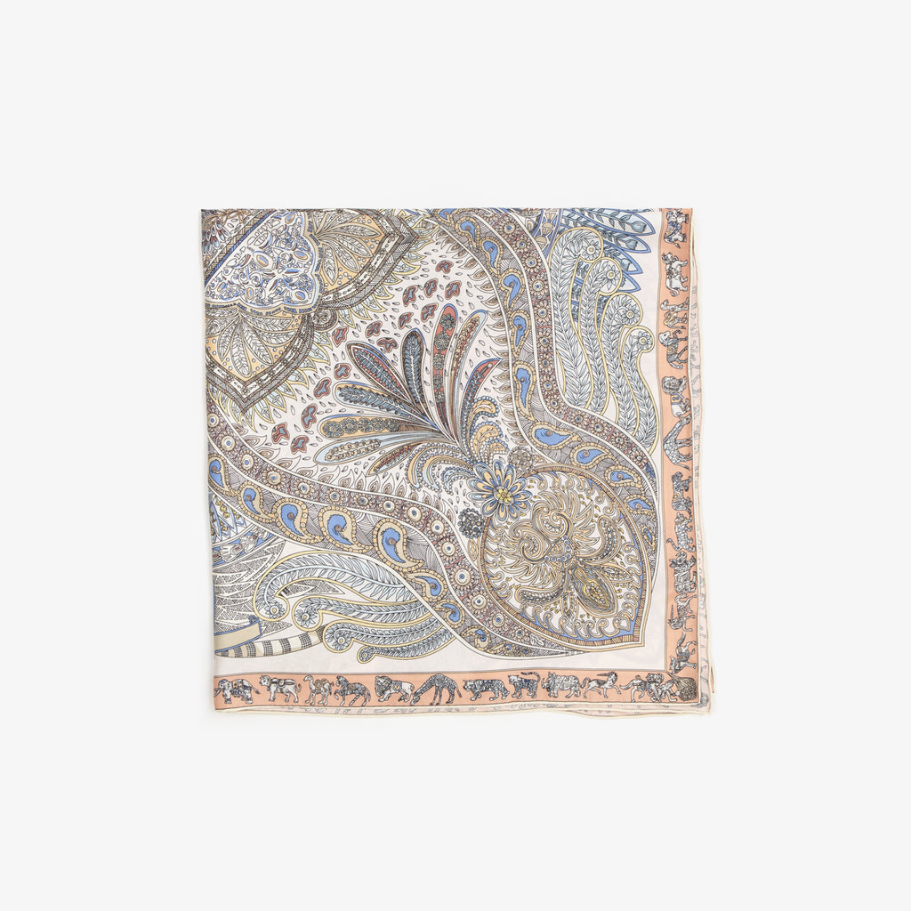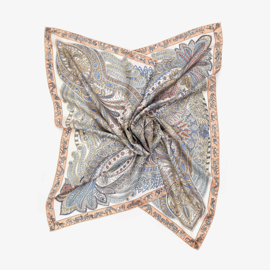 LEEZ Tan Floral Paisley Print Square Silk Scarf