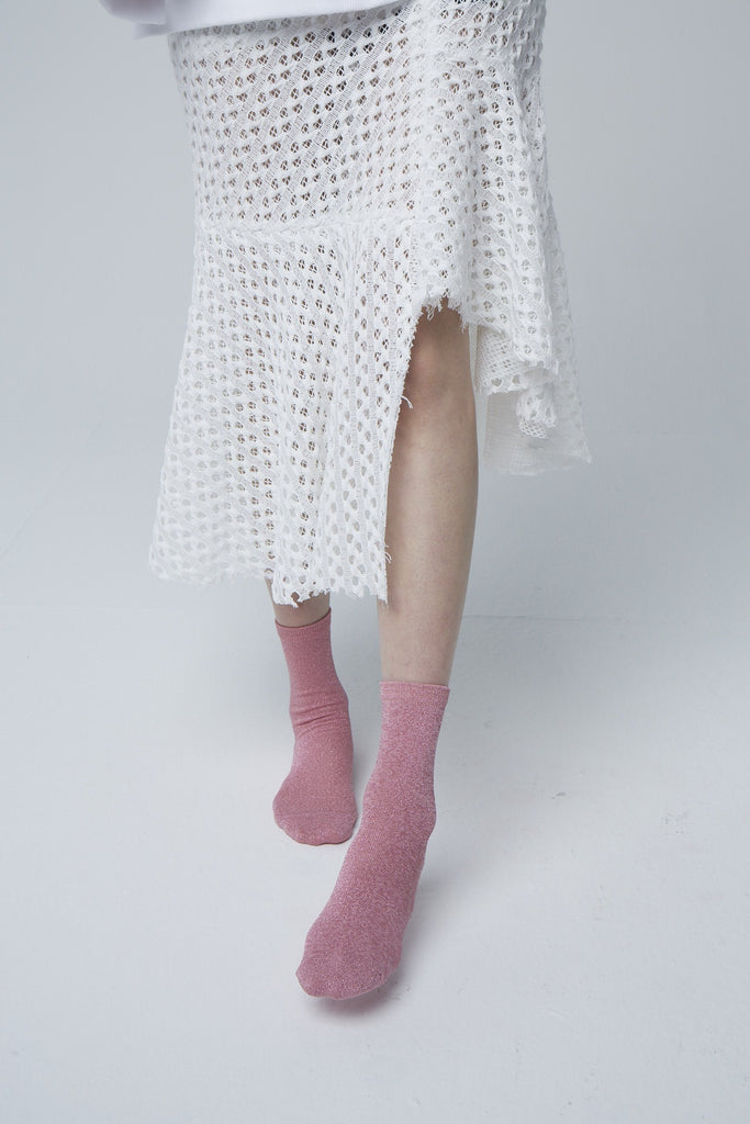 I hate Monday Socks-Unisex/Free Size-glitter pearl socks pink