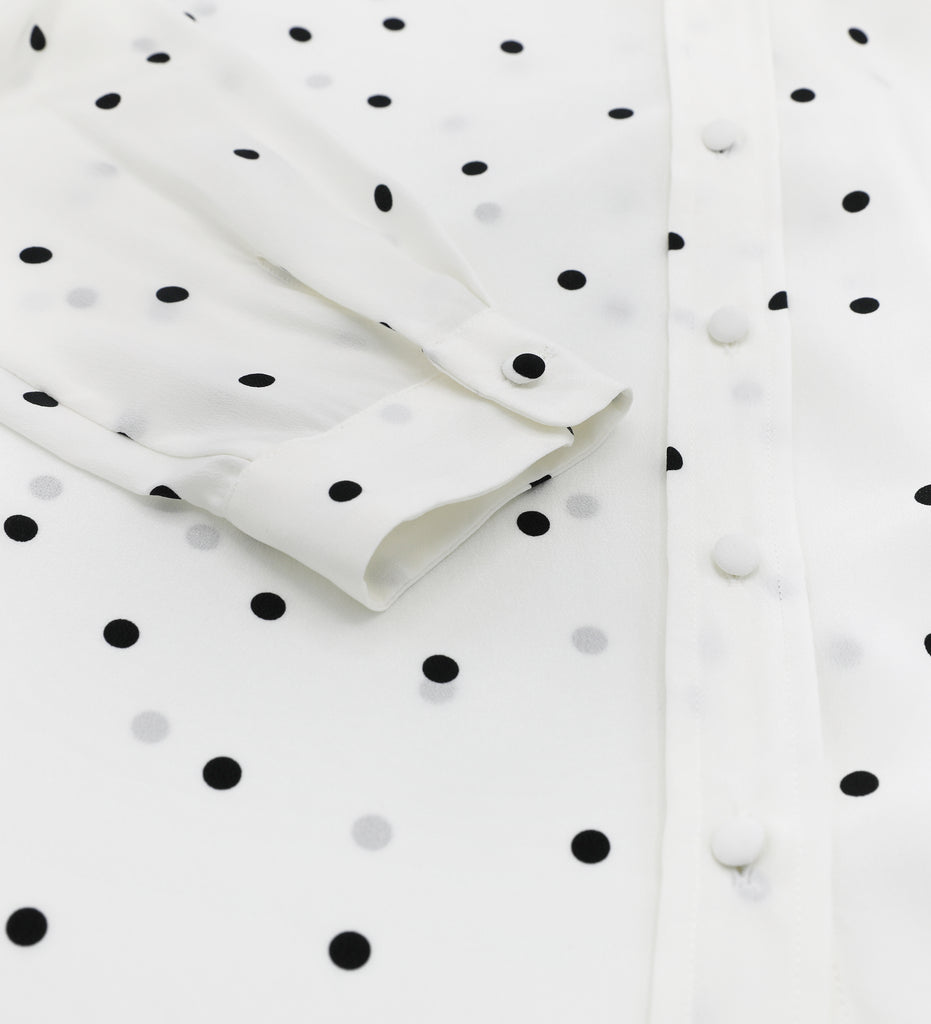 Leez Mulberry Silk Blouse Polka Dot White/Black