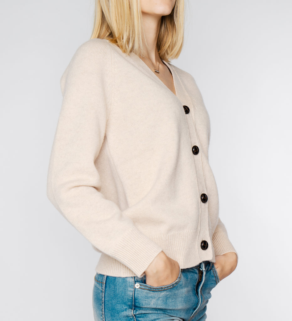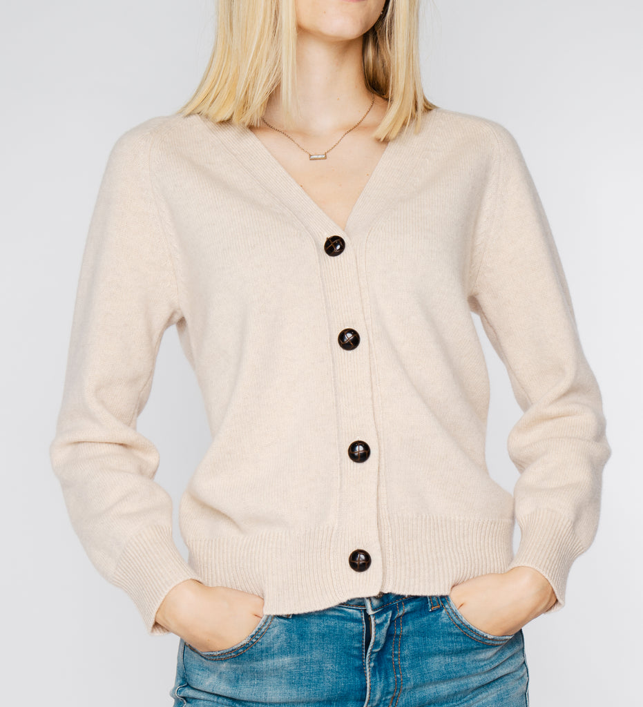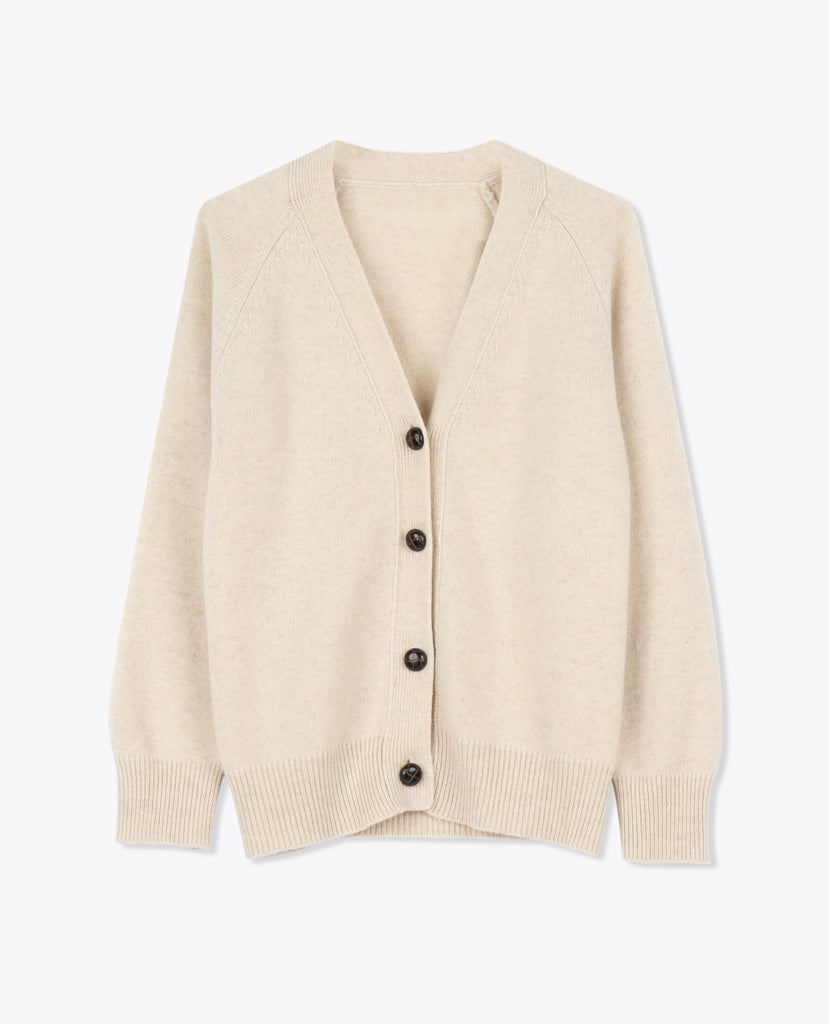 LEEZ Women V-Neck Cardigan in Wool - Beige