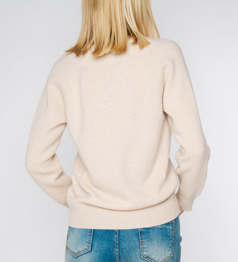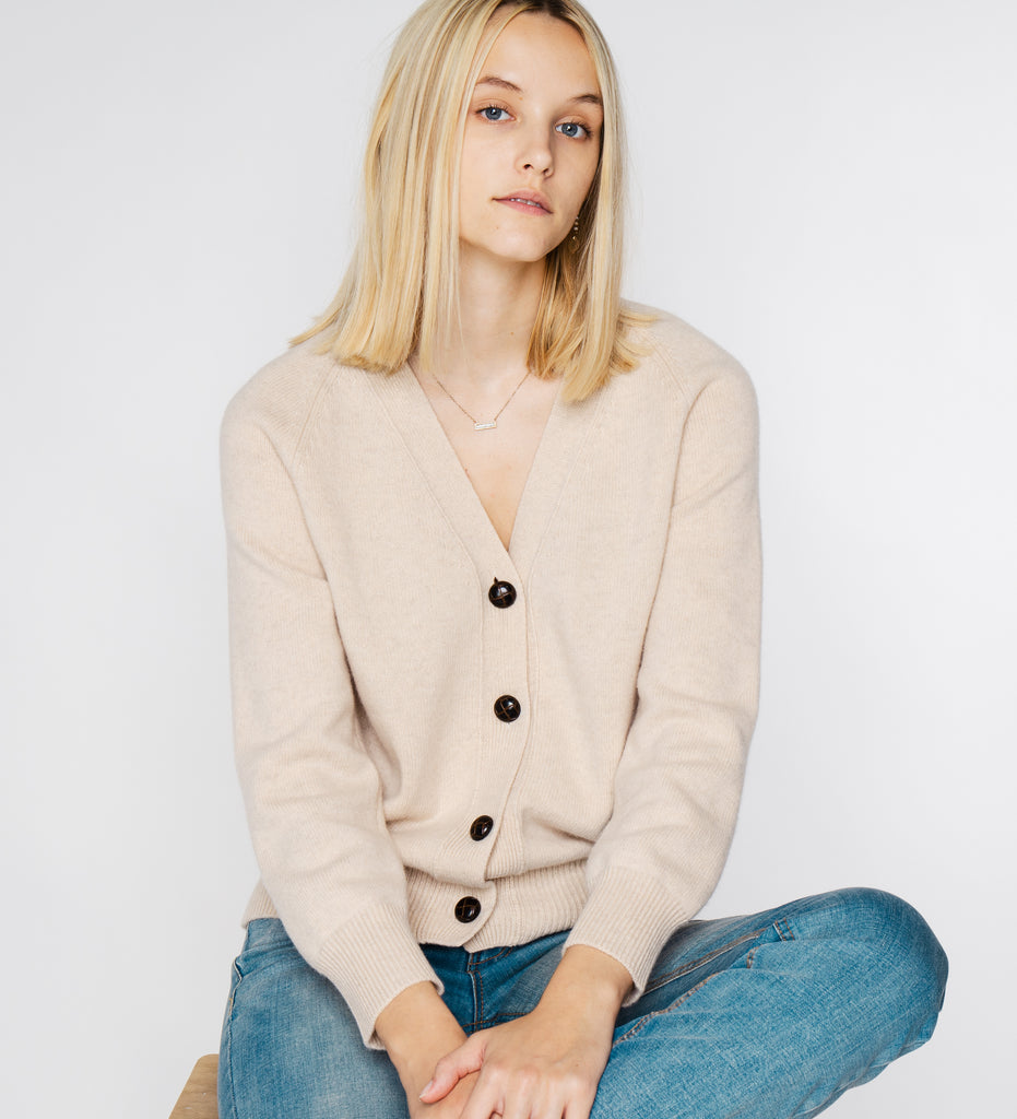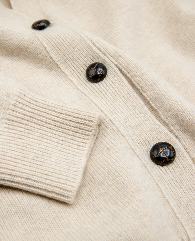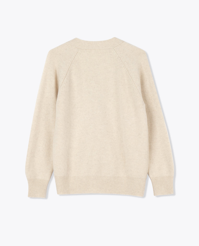 LEEZ Women V-Neck Cardigan in Wool - Beige