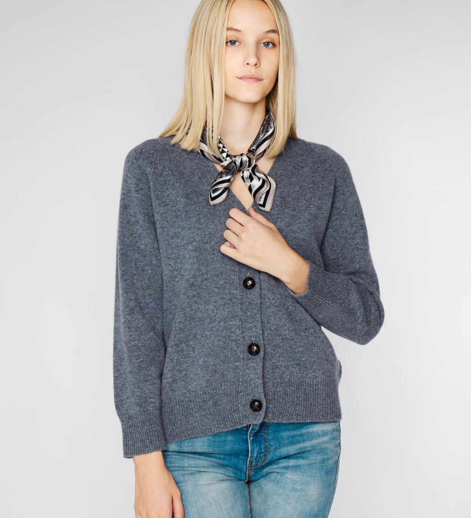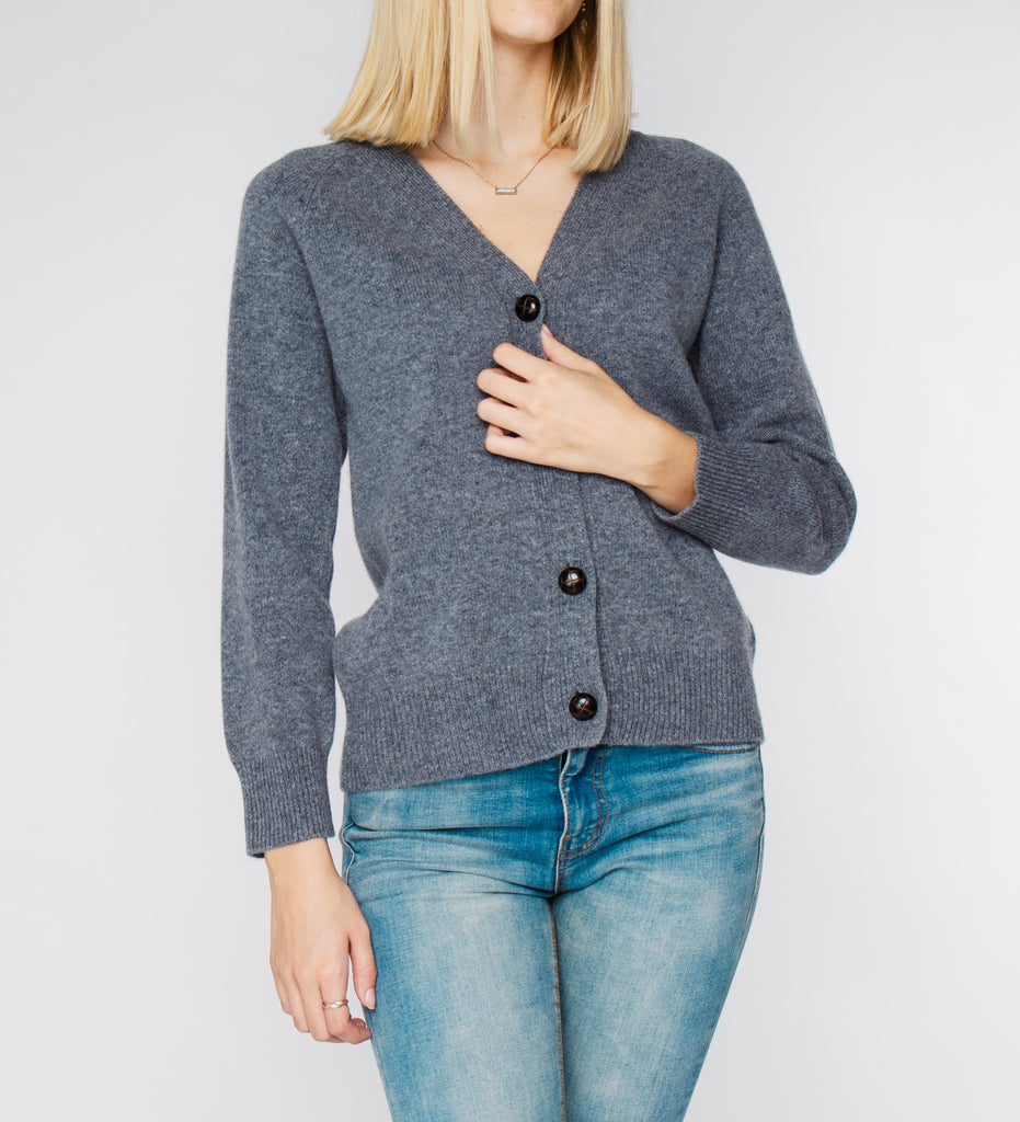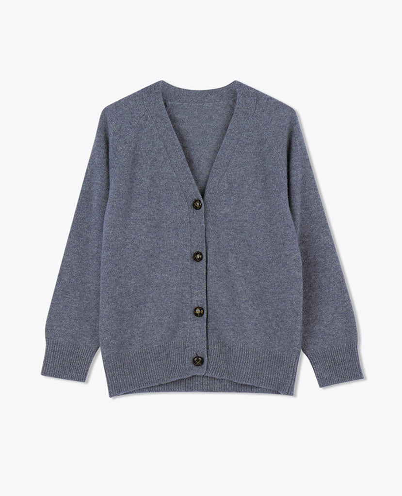 LEEZ Women V-Neck Cardigan in Wool - Ash Grey
