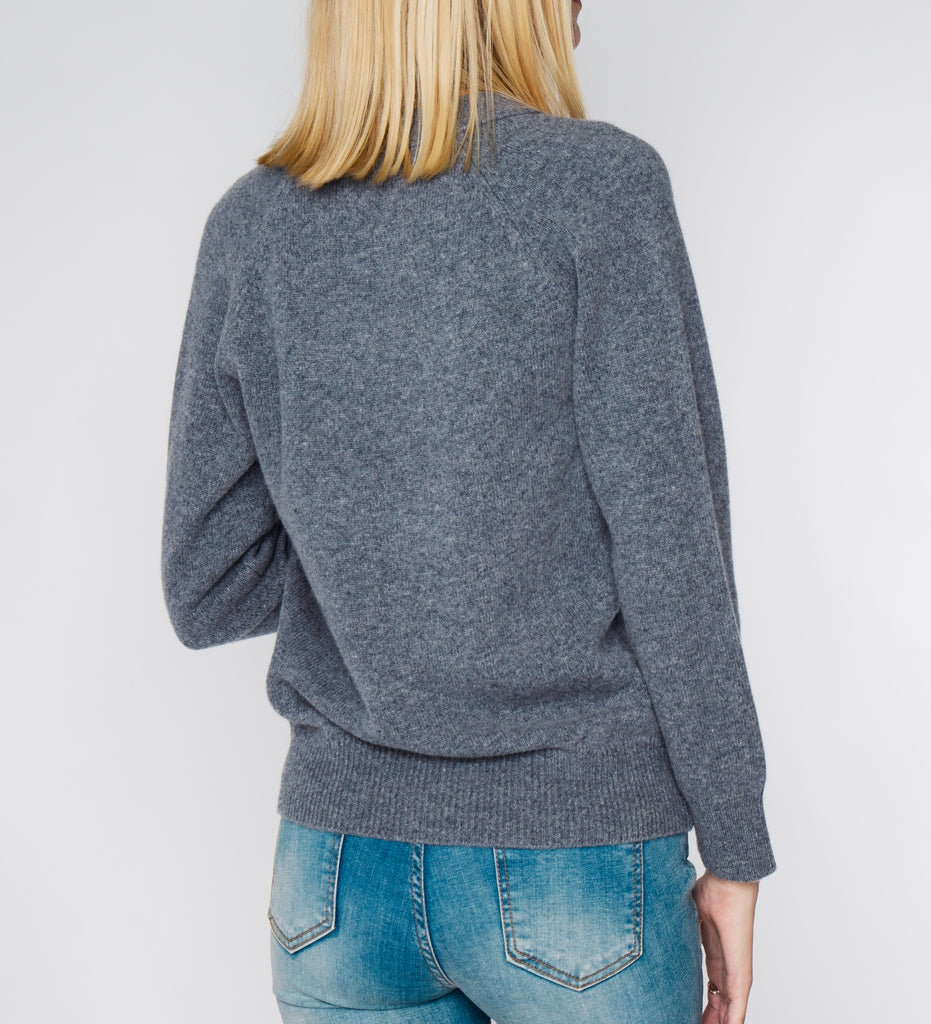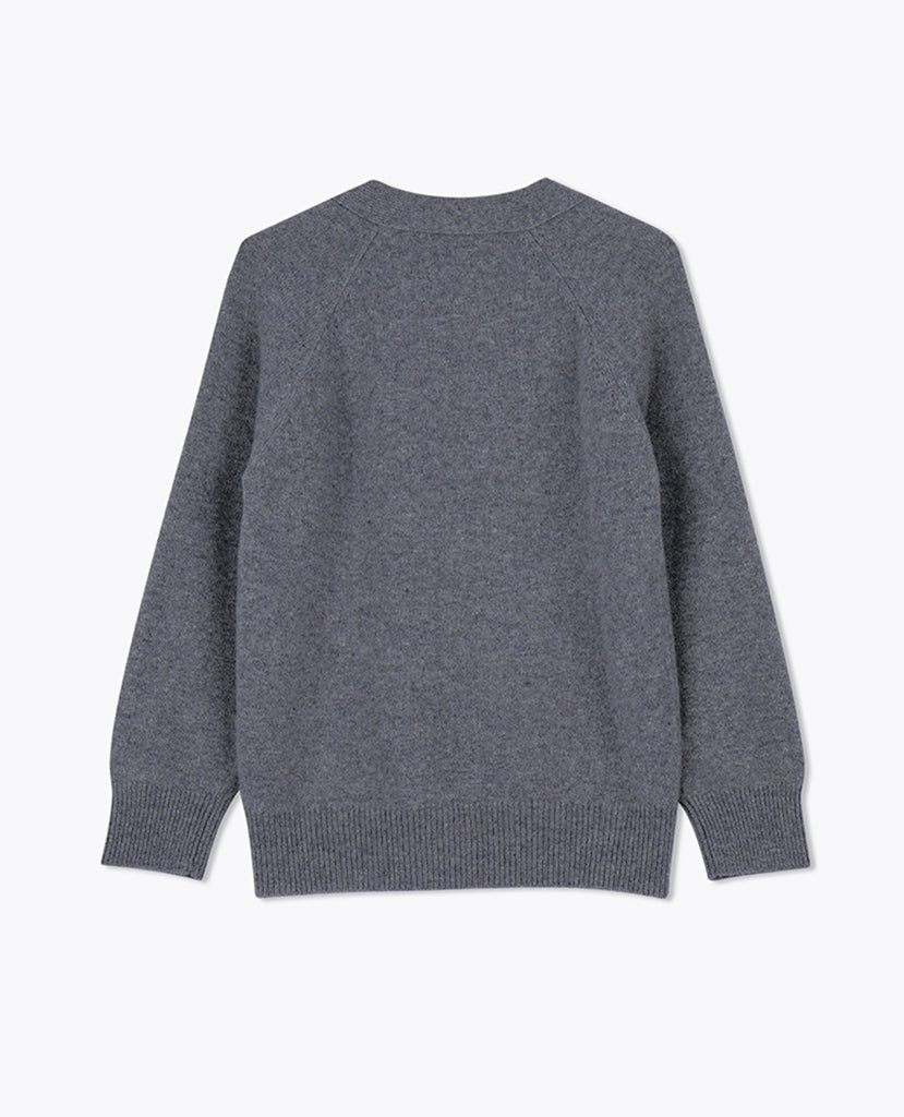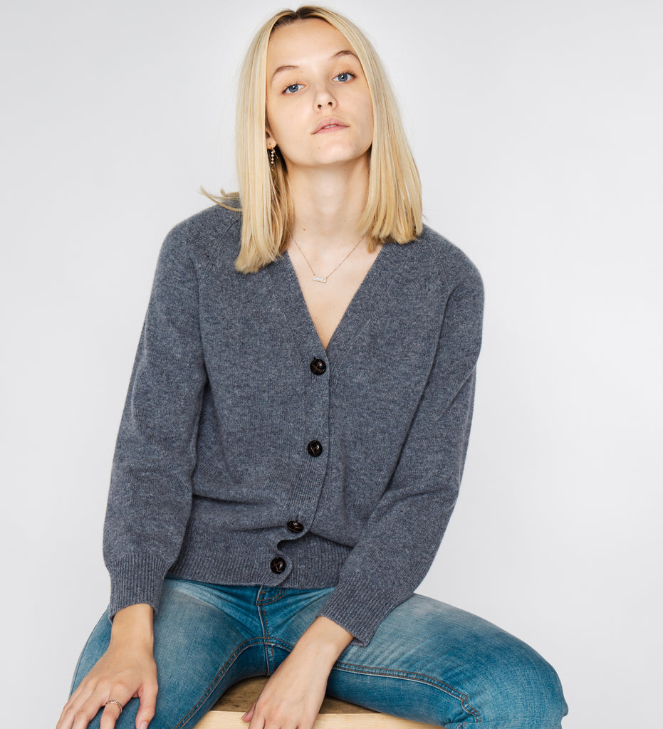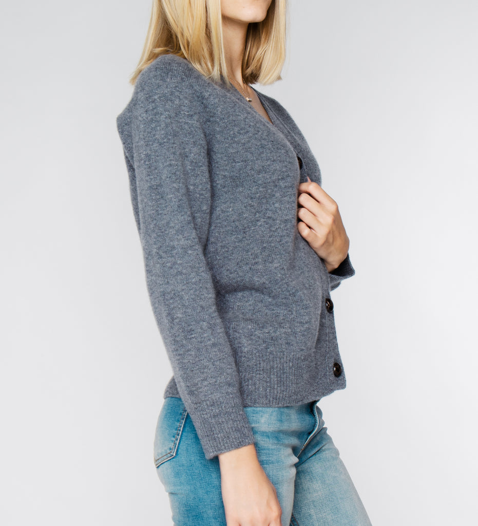 LEEZ Women V-Neck Cardigan in Wool - Ash Grey