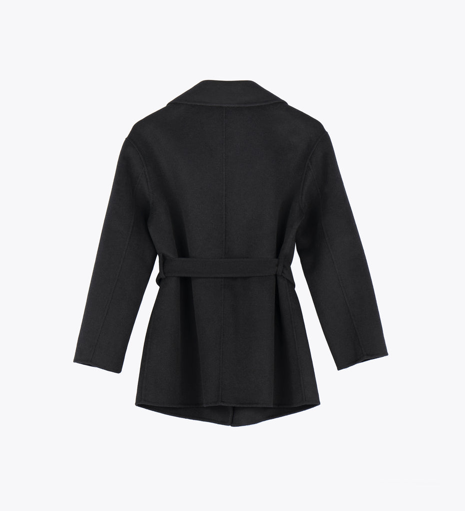 LEEZ Women Notched Lapel Wool Belted Short Coat Black