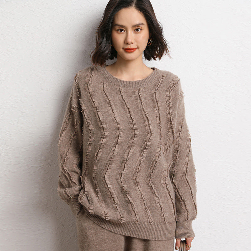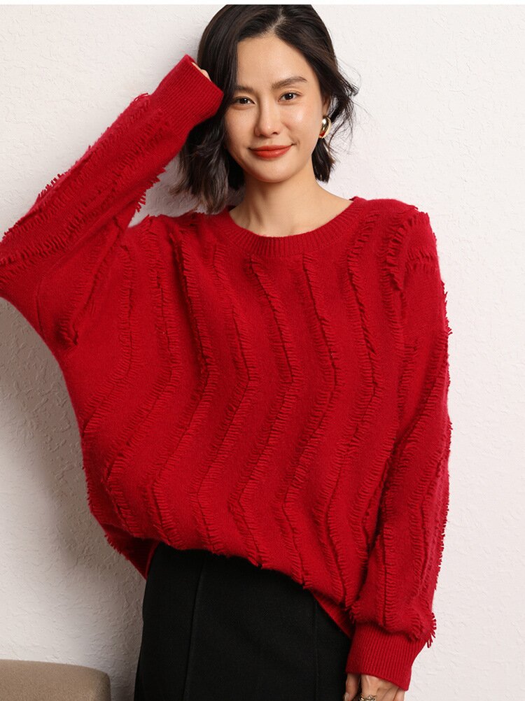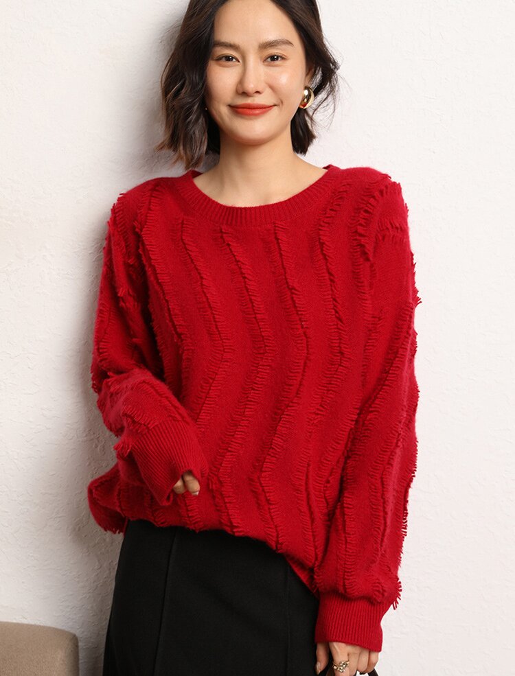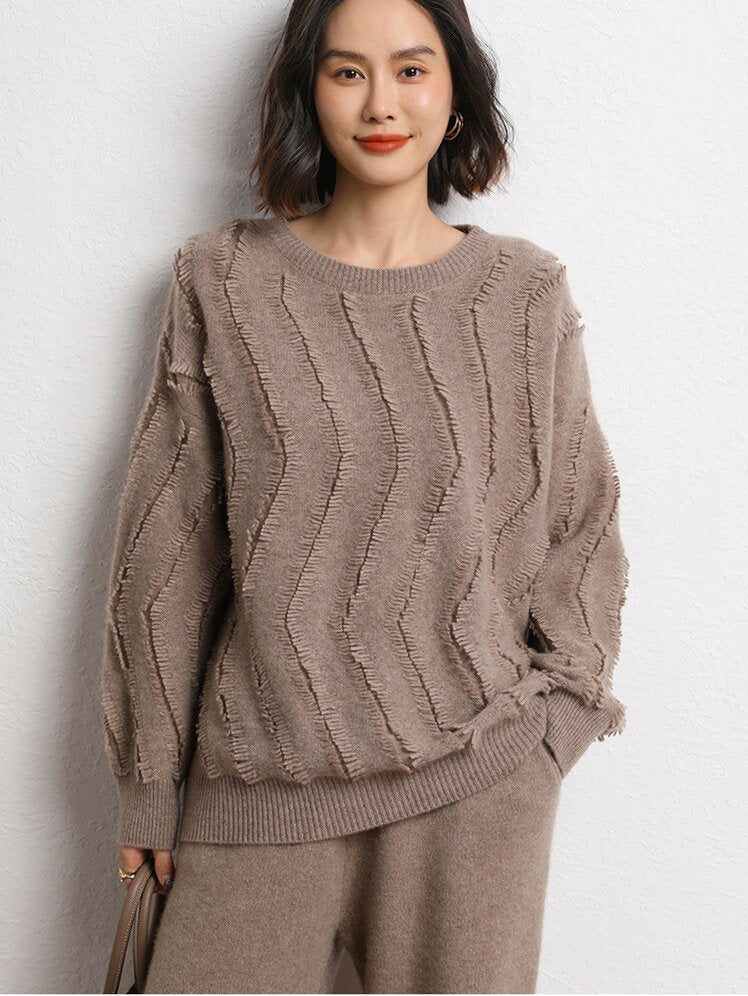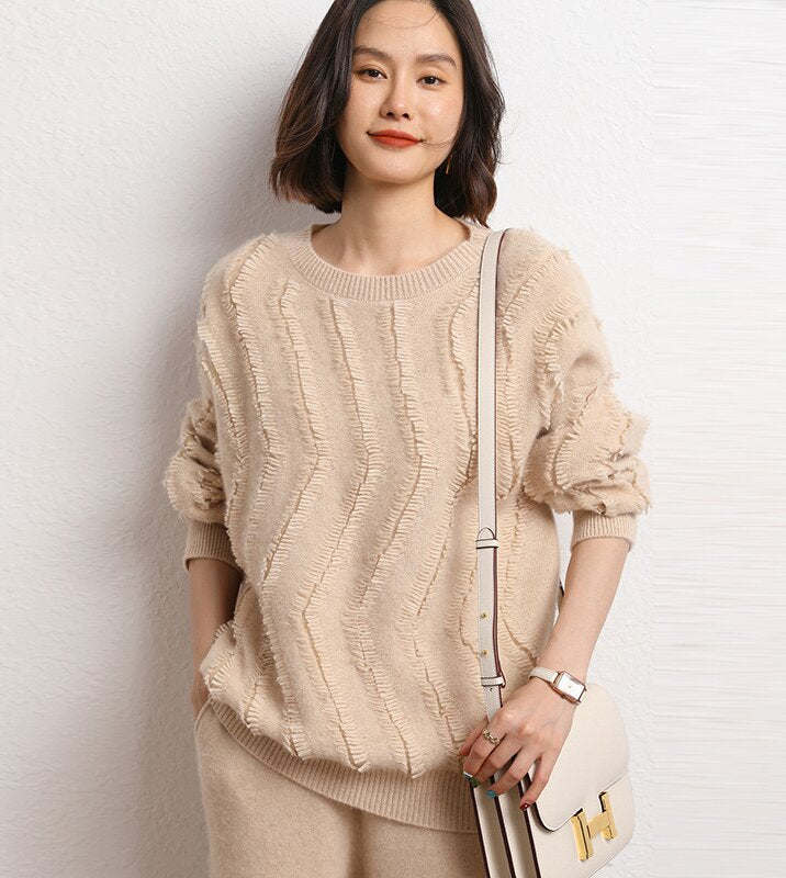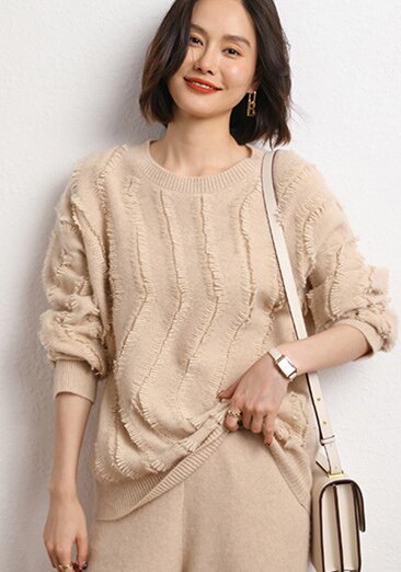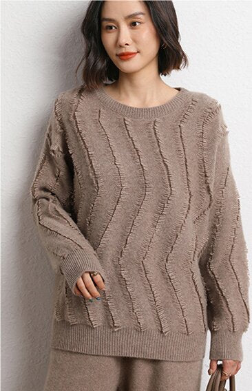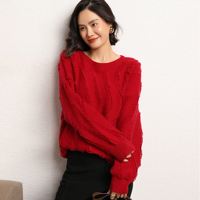 Leez Women's Tassel Pullover Round Neck Cashmere Sweater
