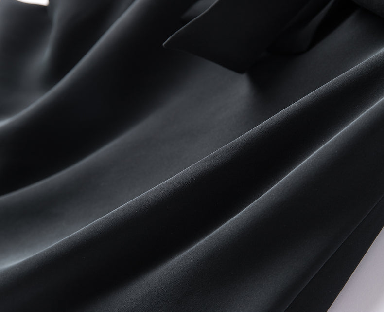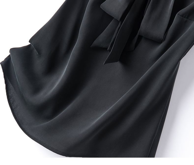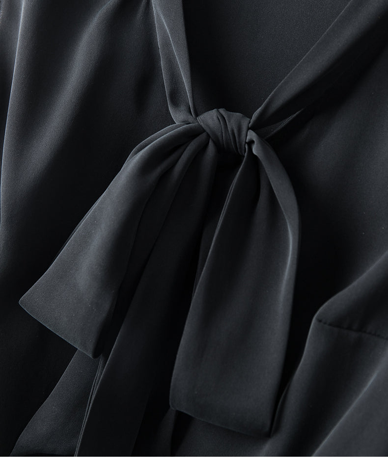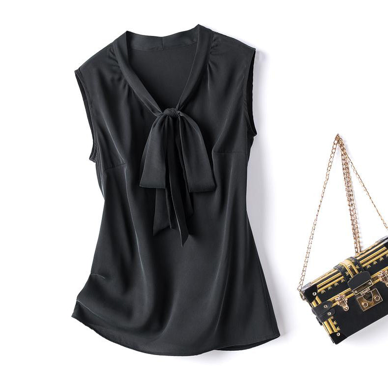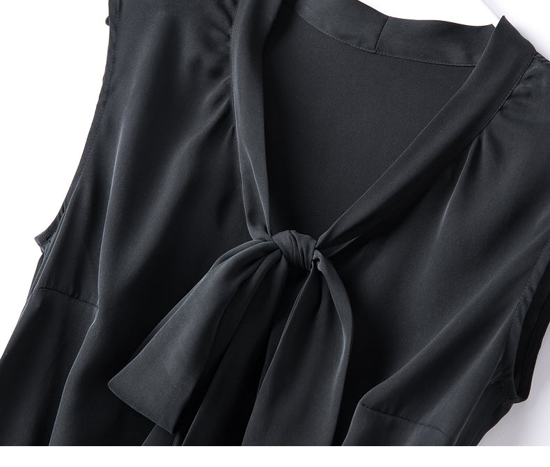 LEEZ SILK SLEEVELESS TIEFRONT BLOUSE - BLACK