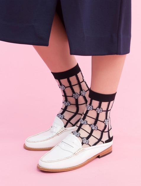 I hate Monday Socks-Unisex/Free Size-mesh flower black